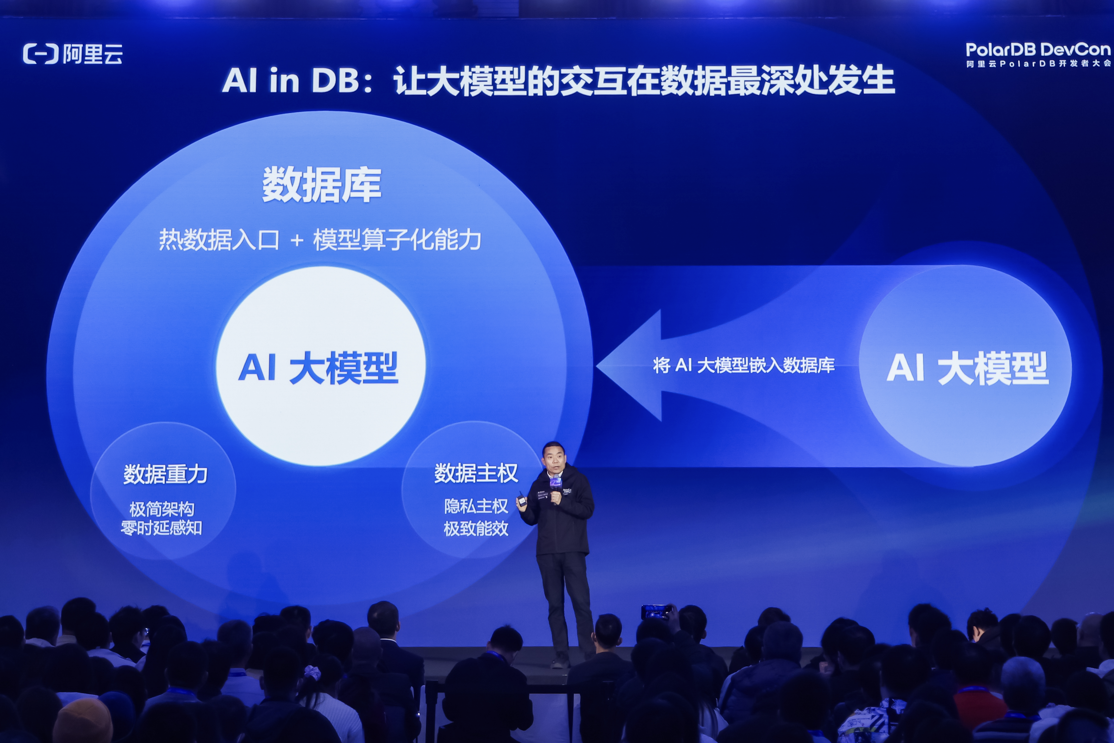 为此,阿里云在过去两年将PolarDB从一个云原生数据库,快速演进为一个“AI就绪的云原生数据库”。其核心理念是:将大模型能力嵌入数据库,让智能交互在数据实时产生的地方发生,数据不必来回搬运,也更好地保障了数据主权与隐私安全。