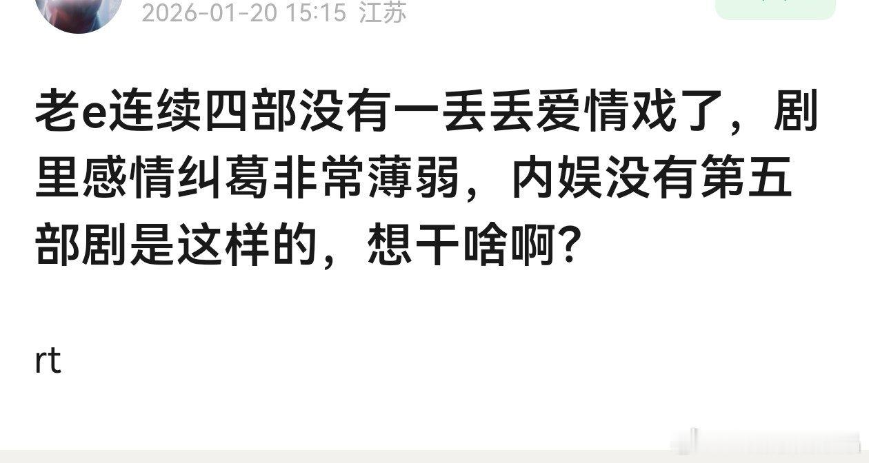 老の不可能离开瑞的,脂粉陆依萍都开始带领大家讨论怎么改变老の的戏路,比如增加女主角,增加感情戏,增加cp戏份,剧里不能独美,避免继续扑街。