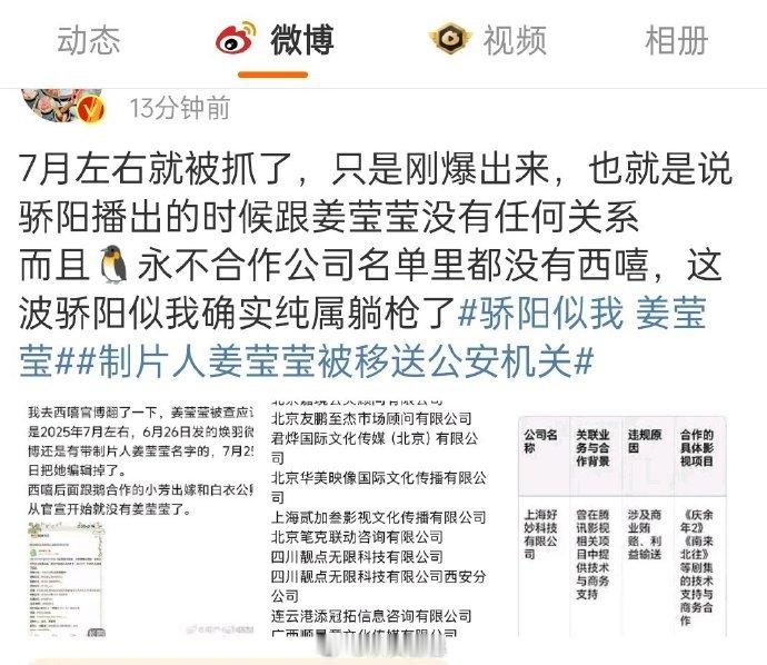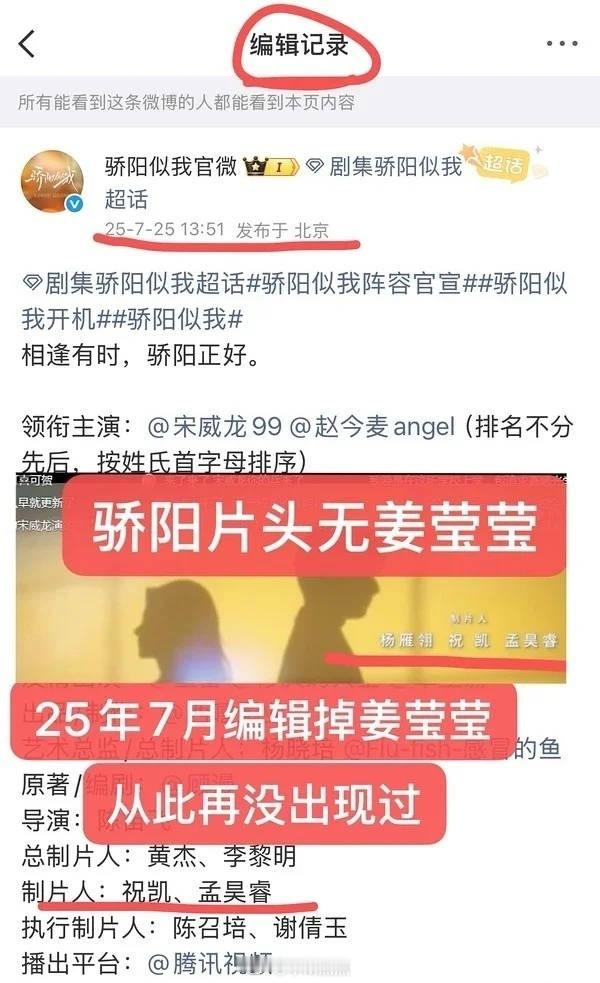 骄阳似我 姜莹莹 制片了这么多剧,偏偏只提骄阳。网友考察了时间线,骄阳似我 之前正常发制片人,不过7月开始就把姜莹莹编辑掉了,从此以后再没出现…所以姜莹莹和26年破三万的骄阳没有任何关系, 骄阳成绩含金量upup制片人姜莹莹被移送公安机关,骄阳似我反腐后经得住考验的破万剧