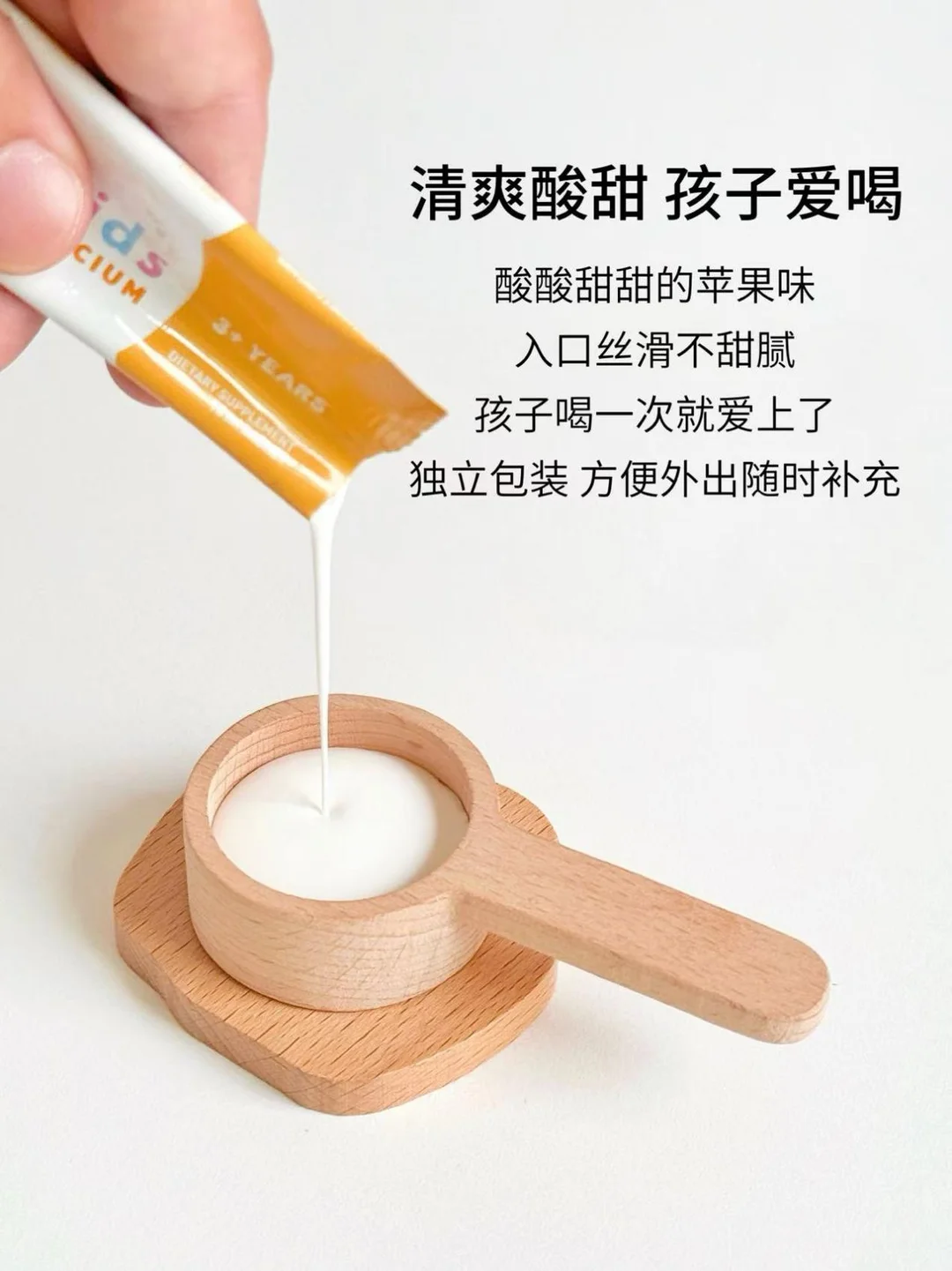 口感也是娃能坚持喝下去的关键。清爽的苹果味,酸甜度刚好,质地滑溜溜的没颗粒感,没有那些乱七八糟的怪味,娃第一次喝就不抗拒。现在每天早上刷完牙,自己就记得去拿一条,不用我天天追着催。坚持给娃喝了段时间,变化还是能看出来的。最近量身高,确实比之前高了一点,之前有点含胸的小习惯也改了不少,站着看着挺拔多了。