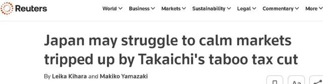 多家西方媒体这两天密集指出,高市早苗不仅要想办法说服日本人支持她,还面临着一个更棘手的大麻烦:投资人对她承诺的新政策的不信任。