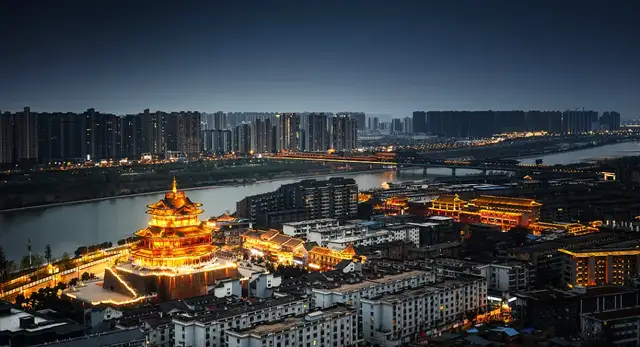 清渭楼是咸阳市最具历史底蕴和文化象征的地标之一,可遥望现代地标建筑群,展现着城市的繁华与活力。