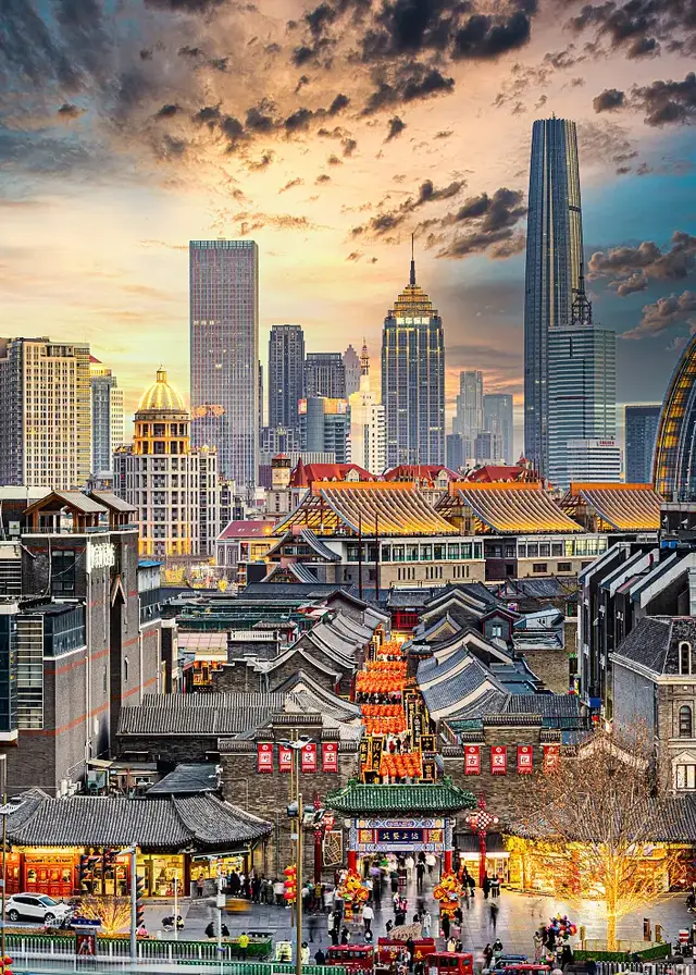 漫步天津古文化街,青砖黛瓦的仿清建筑与远处鳞次栉比的现代高楼相映成趣,时空在此奇妙交汇。