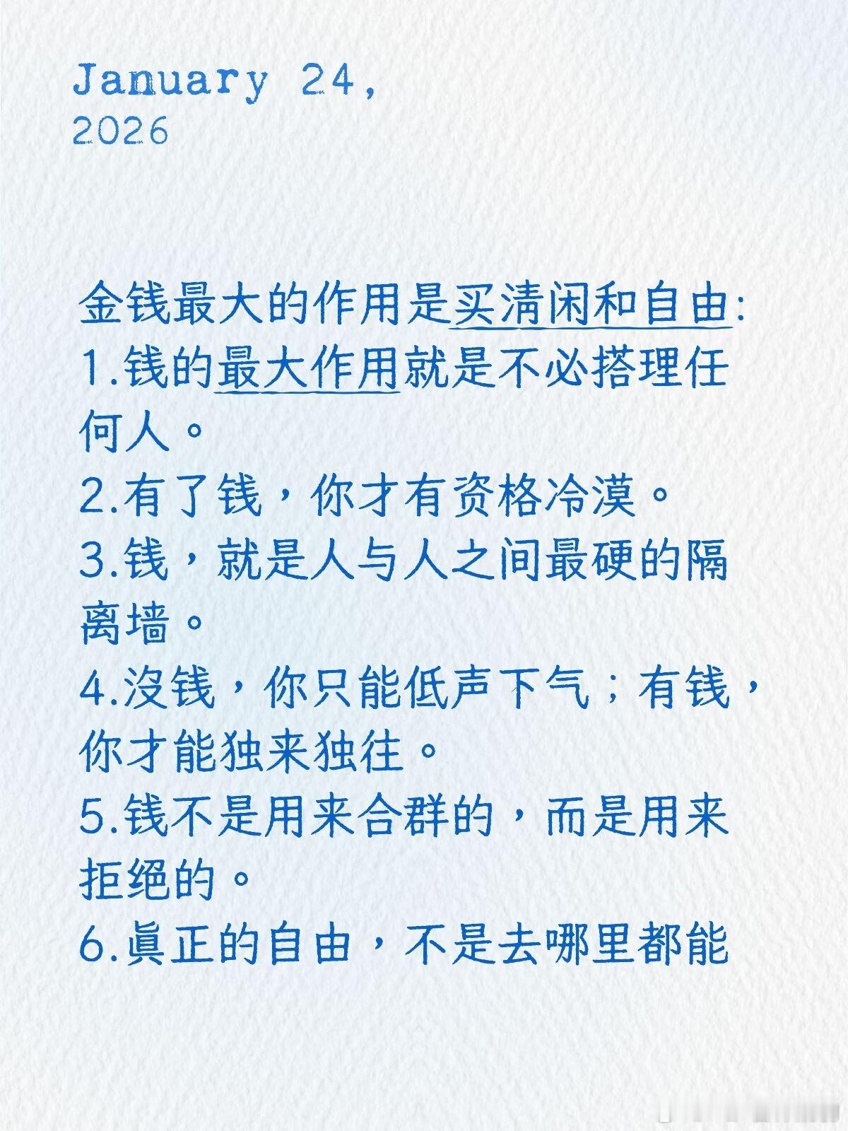 钱的最大作用是买清闲和自由钱可以解决世上90%的问题,剩下的10%可以靠钱来缓解