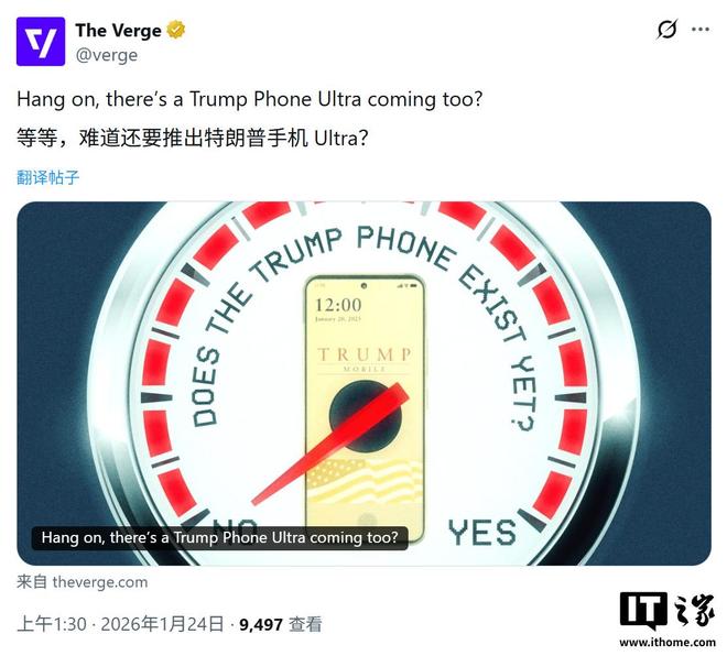 IT之家1月24日消息,科技媒体TheVerge今天(1月24日)发布博文,报道称尽管初代T1手机尚未发货,特朗普移动(TrumpMobile)高管唐·亨德里克森(DonHendrickson)透露,公司已规划名为T1Ultra的高端后续机型。