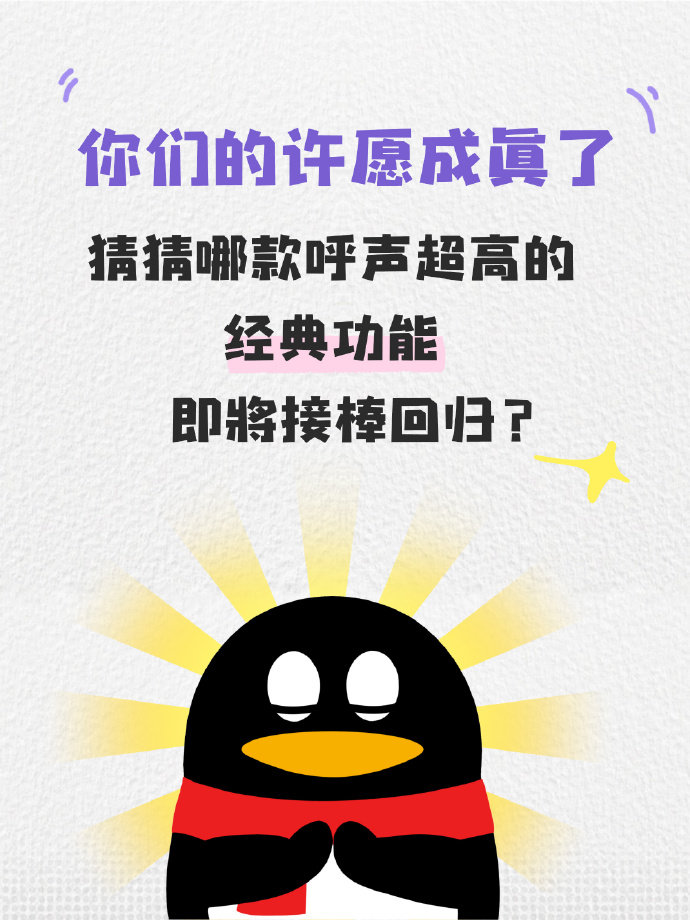 值得注意的是,QQ在最近一年动作频频,如QQ经典版回归、推出消息新形态Q泡、闪传等。腾讯今日预告,还有一款呼声超高的QQ经典功能,即将接棒回归。