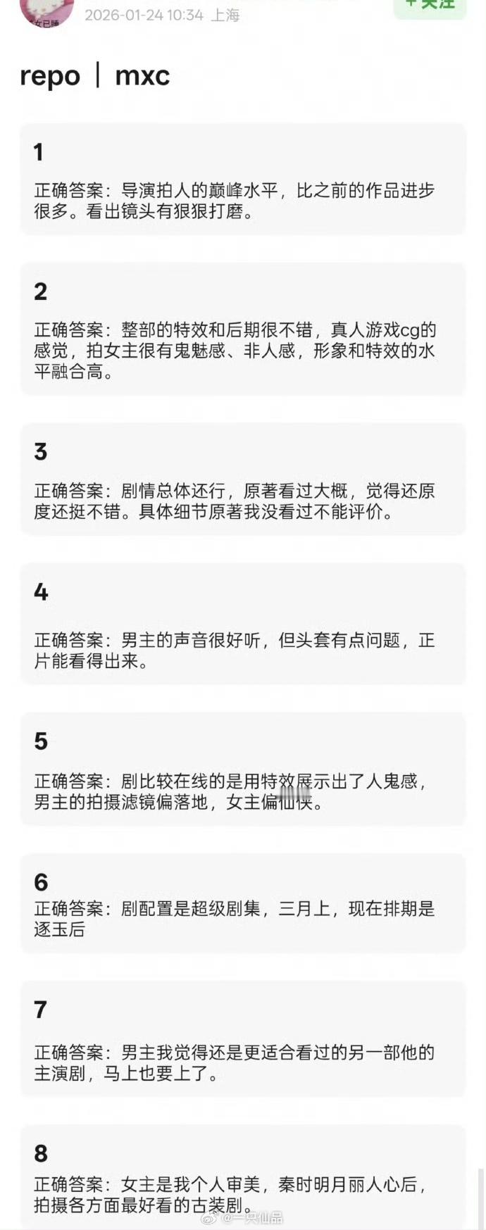迪丽热巴慕胥辞看片repo评价非常不错,剧集还原度也非常不错啊啊啊啊啊,一把子期待迪丽热巴贺思慕