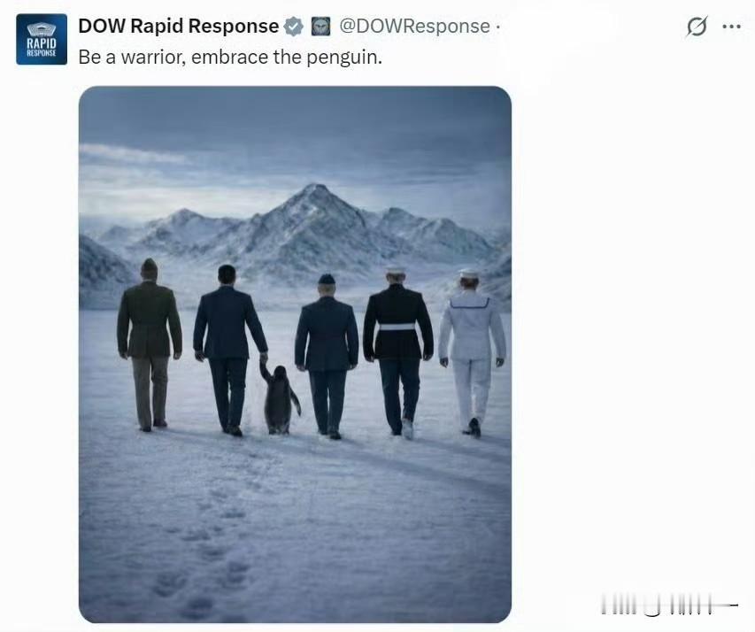 我都要笑死了,美国白宫发了张图片,图片上是特朗普牵着一只企鹅,举着美国国旗走向格陵兰岛。 发这张照片的人是小学没毕业么,格陵兰岛在北极,北极没有企鹅,只有北极熊。[捂脸]企鹅在南极。 更搞笑的是,过了一段时间他们还没意识到,然后美国战争部也发了张图片,上面是一堆美国军人也牵着企鹅走向格陵兰岛,这是硬要把南极的企鹅宝宝带到北极啊。
