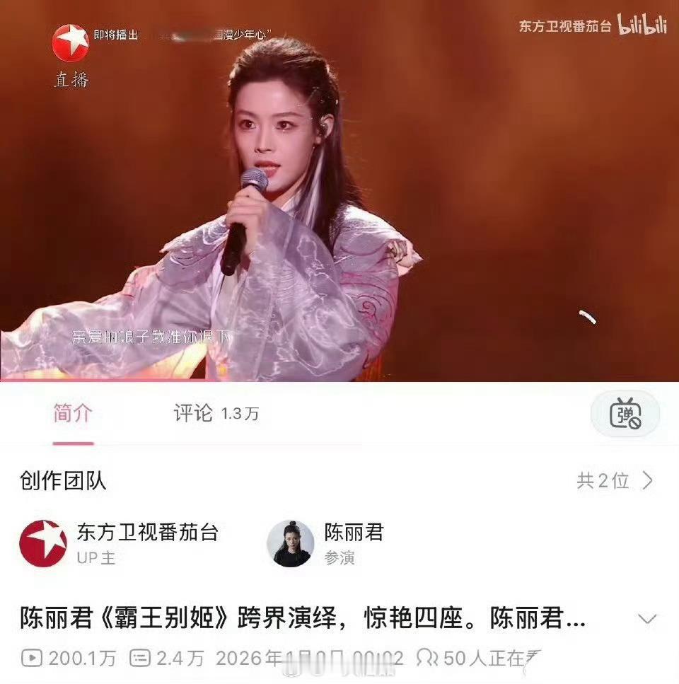陈丽君霸王别姬舞台B站破200万播放量陈丽君的舞台从来质量都很好,长尾效应很牛比
