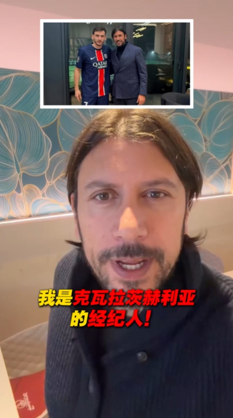 扎卡尔多在视频中说道:“我是克瓦拉茨赫利亚的经纪人,我想向中国U23表示祝贺,很高兴你们进入决赛。我肯定会看这场比赛,衷心祝你们好运,希望迟早中国能再有一位像位克瓦拉茨赫利亚一样的天才球员,我可以把他带入欧洲!”