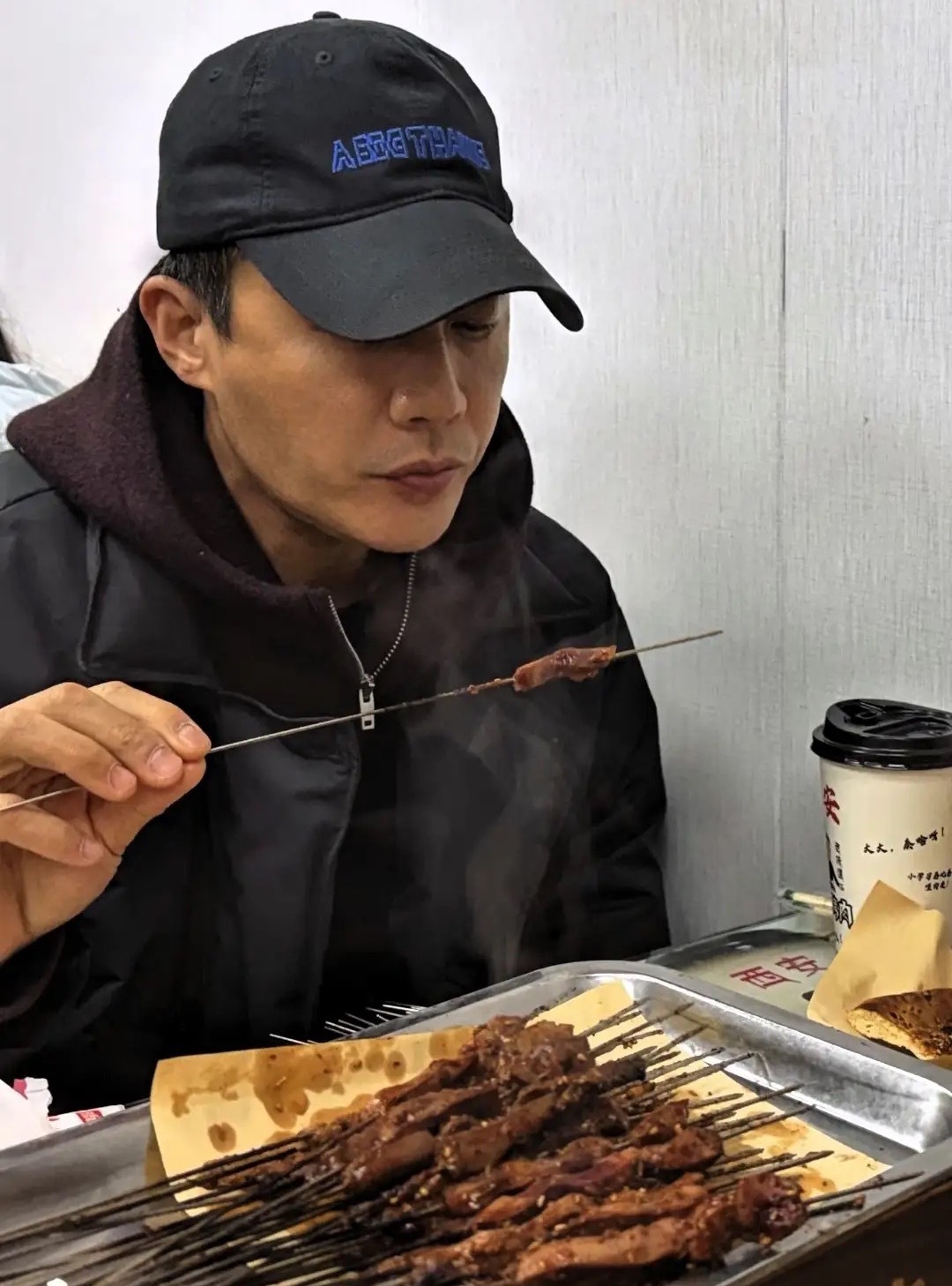 杜淳在西安拍戏,一个人坐小店里吃烤肉串,鬓角已经长出来白头发,才44岁就有沧桑感