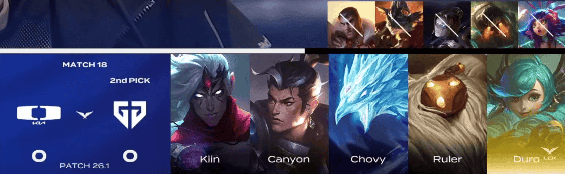GEN选用:Kiin格温、Canyon赵信、Chovy冰鸟、Ruler韦鲁斯、Duro巴德