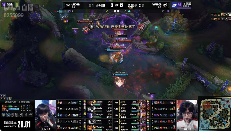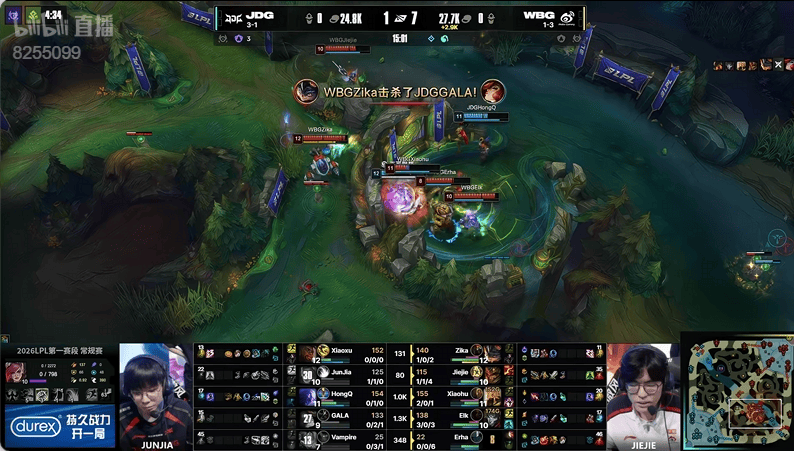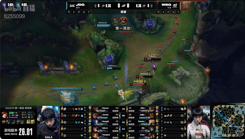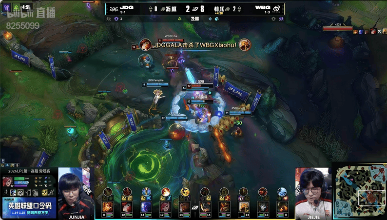 虎扑01月24日讯JDG蓝色方,WBG红色方