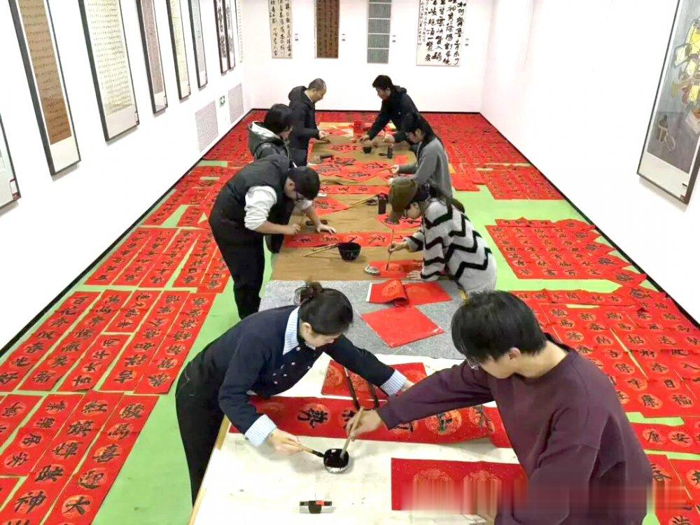 书法专业学生正在准备春联。