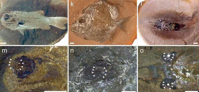 而针对上述黑色斑点进行化学成分分析之后,确认里面含有丰富的黑色素,并观察到了保存完好的黑色素体,对于这些微小的结构来说,它们也存在于现代动物眼睛之中,主要负责吸收多余的光线。而在每个黑色斑点的中央,研究团队都发现了一个椭圆形的水晶体结构,这证明这些古老的鱼不仅可以感光,还可以像现代相机一样形成清晰的图像。