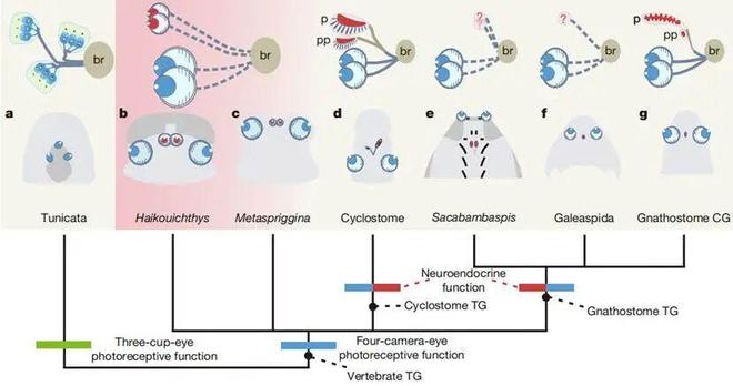 为何现代的大多数脊椎动物只有两只眼睛,而这些鱼却有四只眼睛呢?本次研究指出,这四只眼睛事实上有着共同的起源。在胚胎发育的过程中,它们其实是来自脑部前端的同一组细胞。随着时间的拉长,在同一条进化道路上,不同种类的动物却做出了不一样的选择。