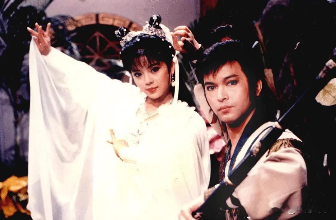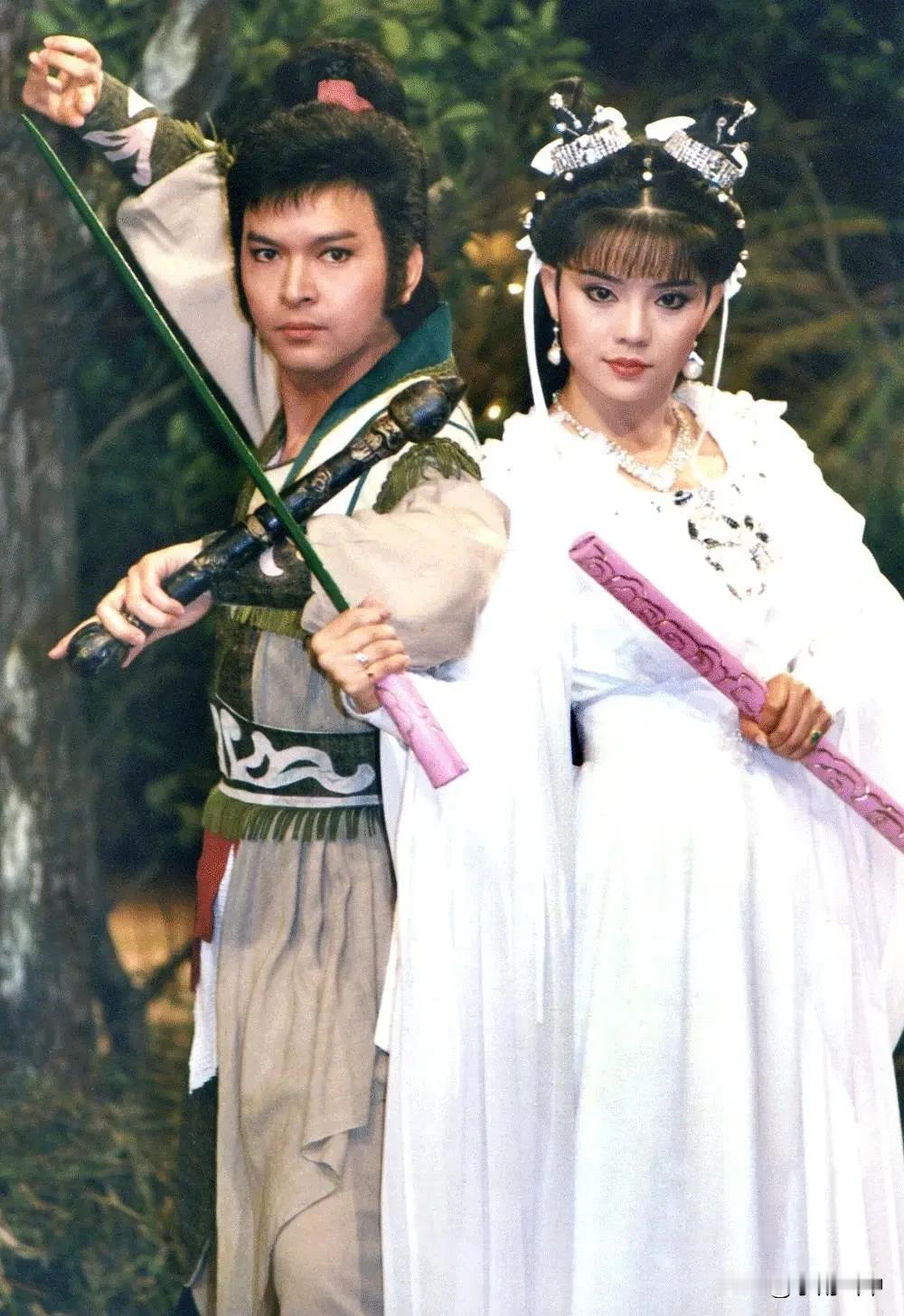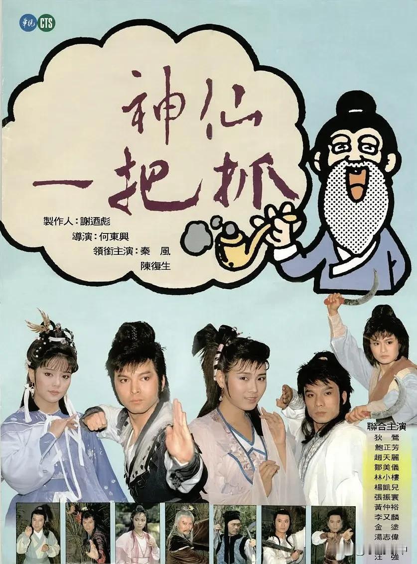 台剧《神仙一把抓》剧照 1987年,台湾华视制作古装剧《神仙一把抓》。女主角米小七由香港tvb擅演古装的陈复生扮演。男主角萧遥由华视小生秦风扮演。女二苏萱萱则由华视小花旦狄莺饰演。三位主角的扮相都不错,男帅女美,看着养眼。