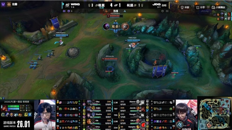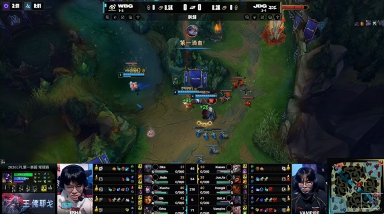 第一局:JDG昨晚没休息好?血脉压制Jiejie抢龙完爆JunjiaWBG赢首局