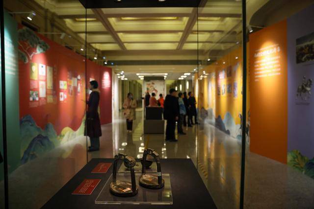 展柜中,一对马镫是直观证明。公元4世纪,中国人发明马镫。它是供骑马人踏脚、保持稳定的马具,使得骑手不再需要紧抓马鬃避免摔下马,得以解放双手,挥舞兵器作战,由此保障了人的安全,使骑兵威力倍增。比邻而置的一对马铃则是挂在马颈上的铃铛,不仅具有装饰价值,更方便即时获知马的位置。