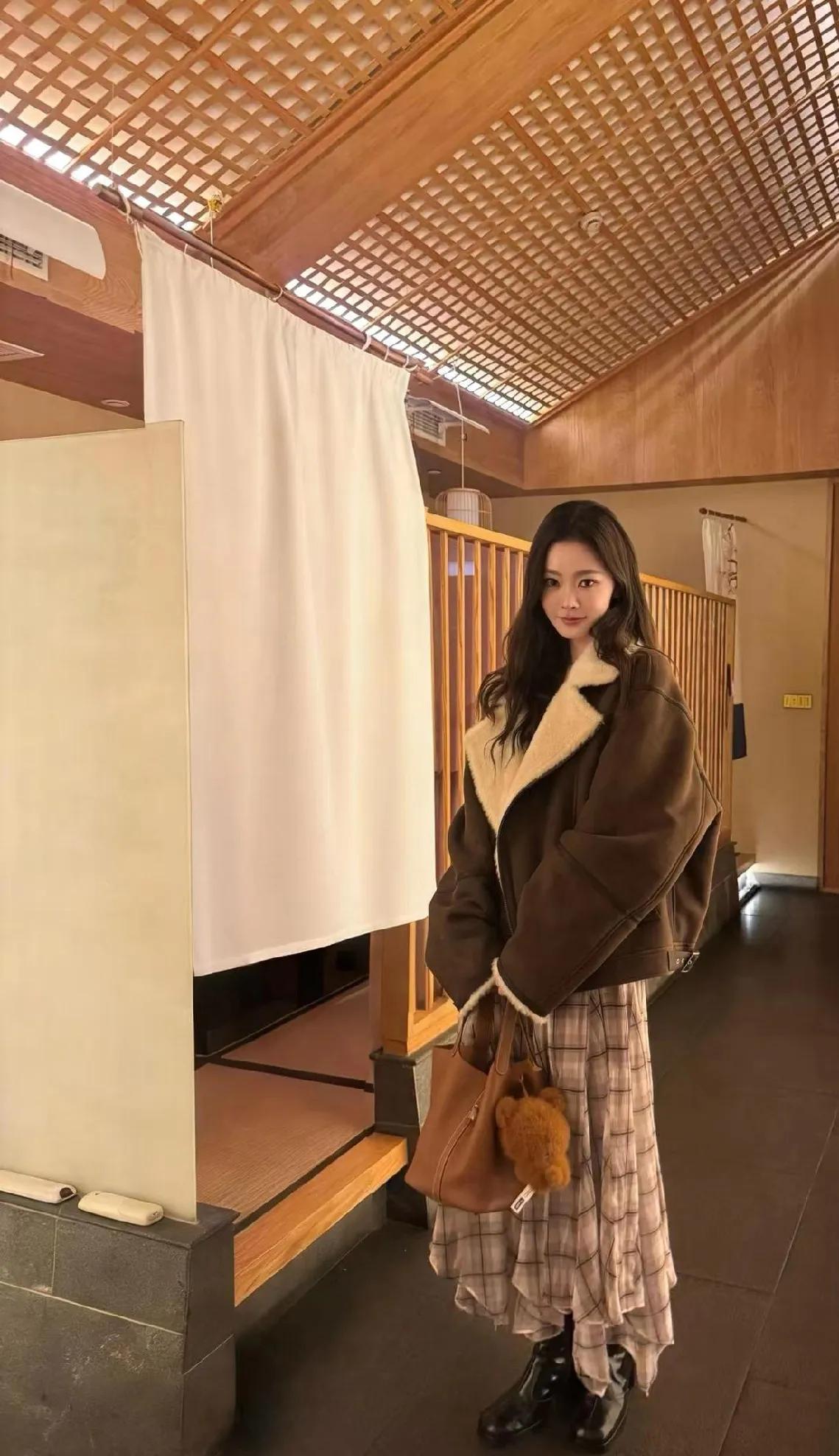 宋轶这波穿搭,把冬日氛围感焊在身上了❄️ 棕色皮毛一体外套+格纹半裙,保暖又时髦,毛绒翻领自带温柔滤镜,格纹裙的飘逸中和了外套的厚重感。 松弛又精致的状态,不管是约会还是逛街都能直接抄作业! 宋轶 冬日穿搭