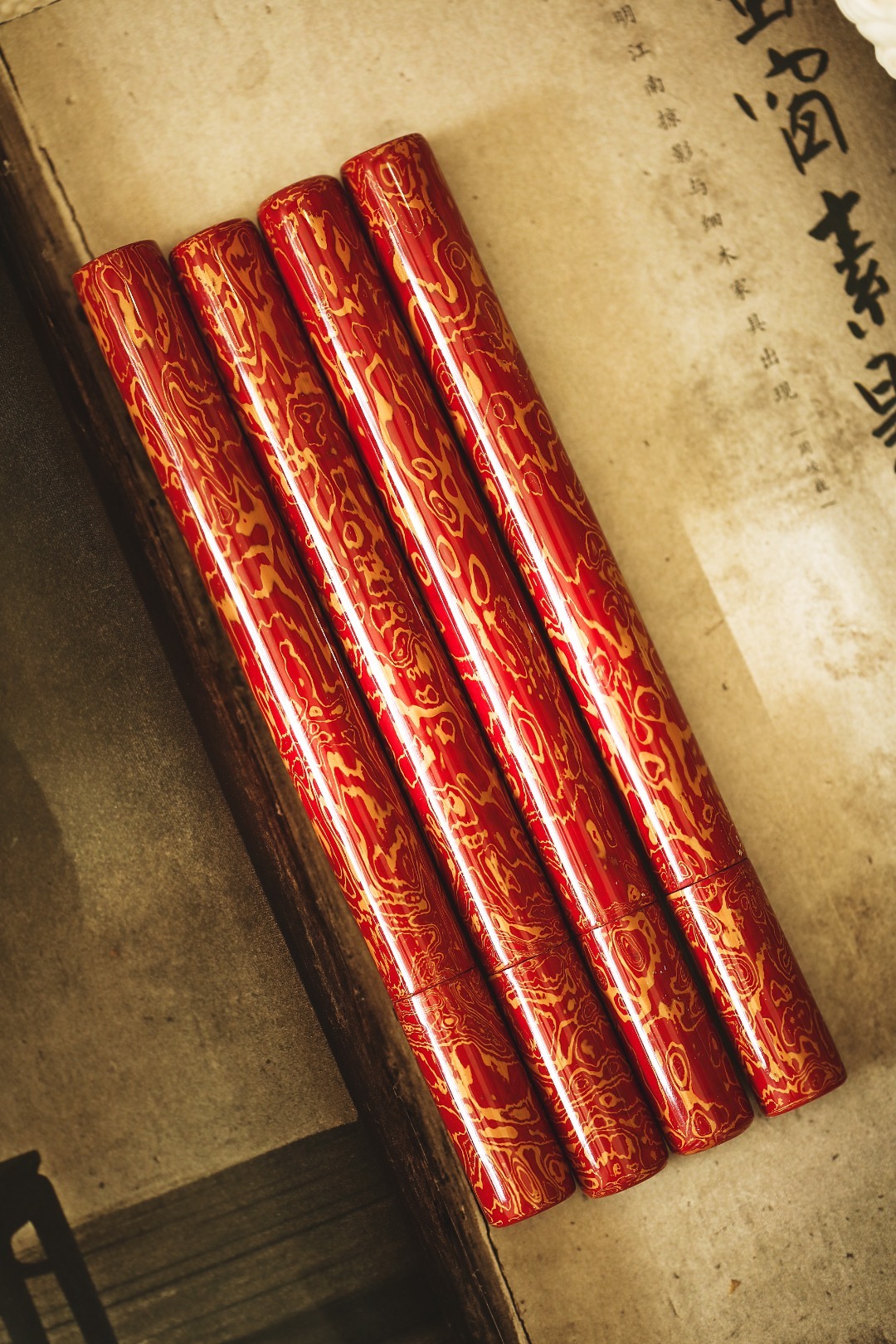 大漆【红金】香筒紫光檀为胎,髹漆其上,色华质坚历久弥新,明艳夺目,清雅的颜色、温