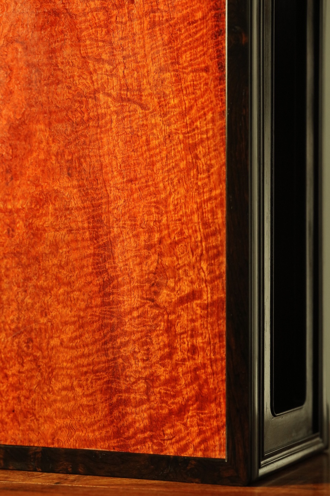 紫光檀x缅花【扶风】香几紫光檀撞色缅花,几面精挑爆满水波料,造型方整光素,四平面
