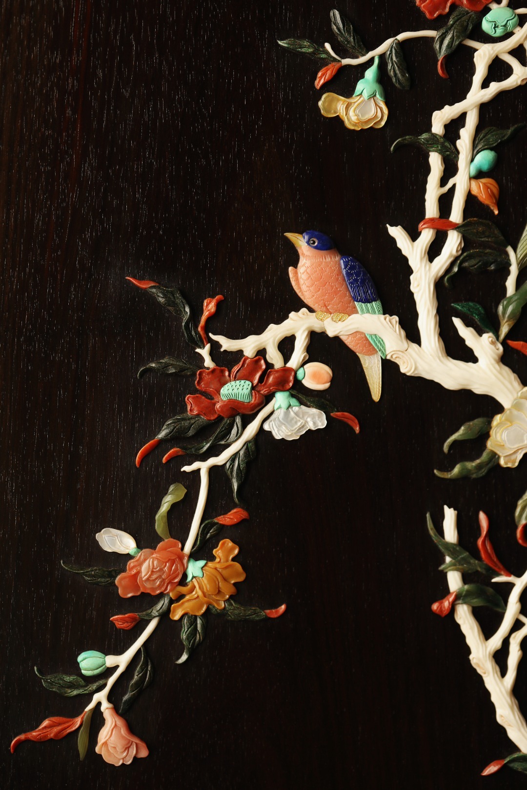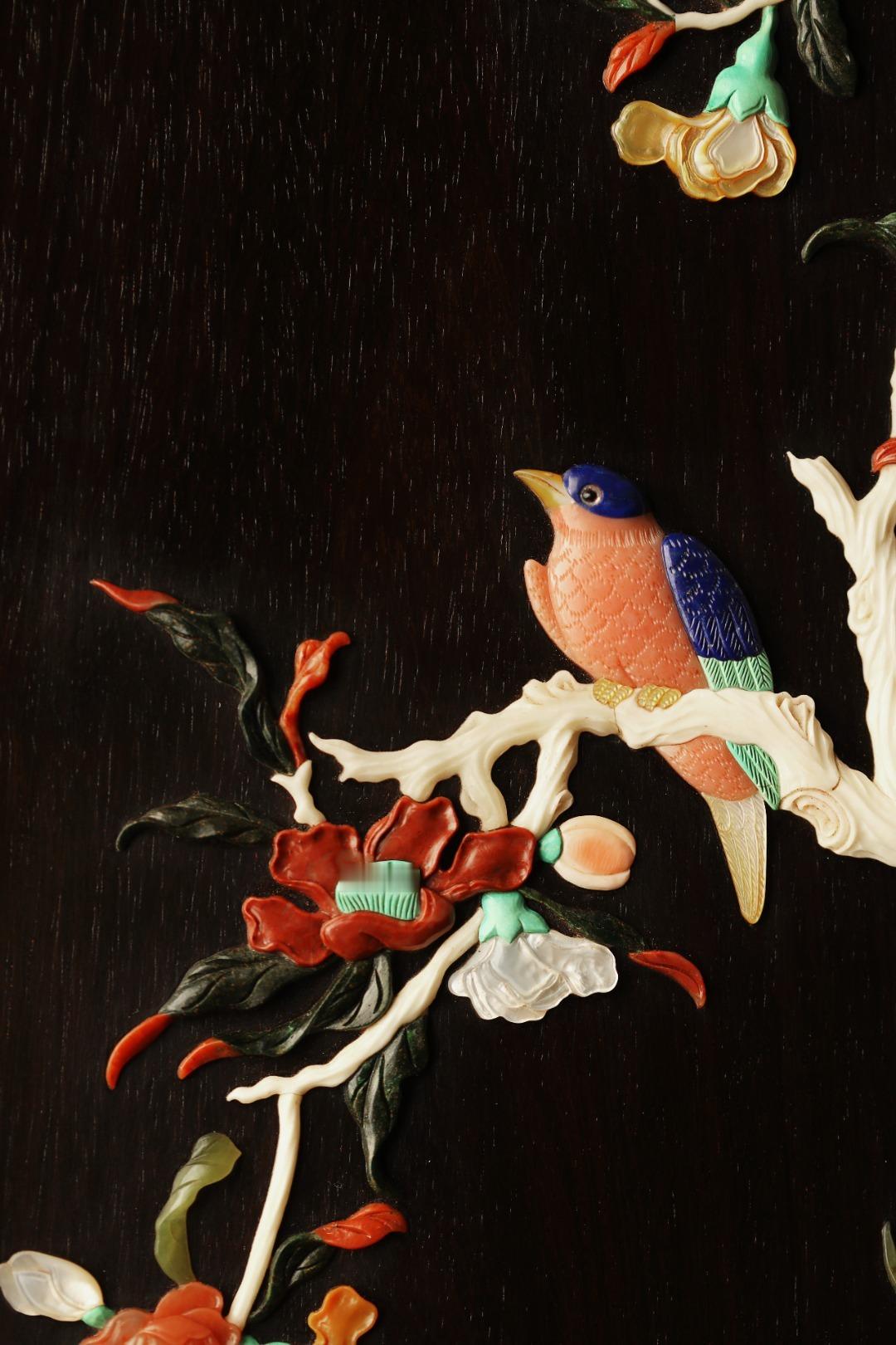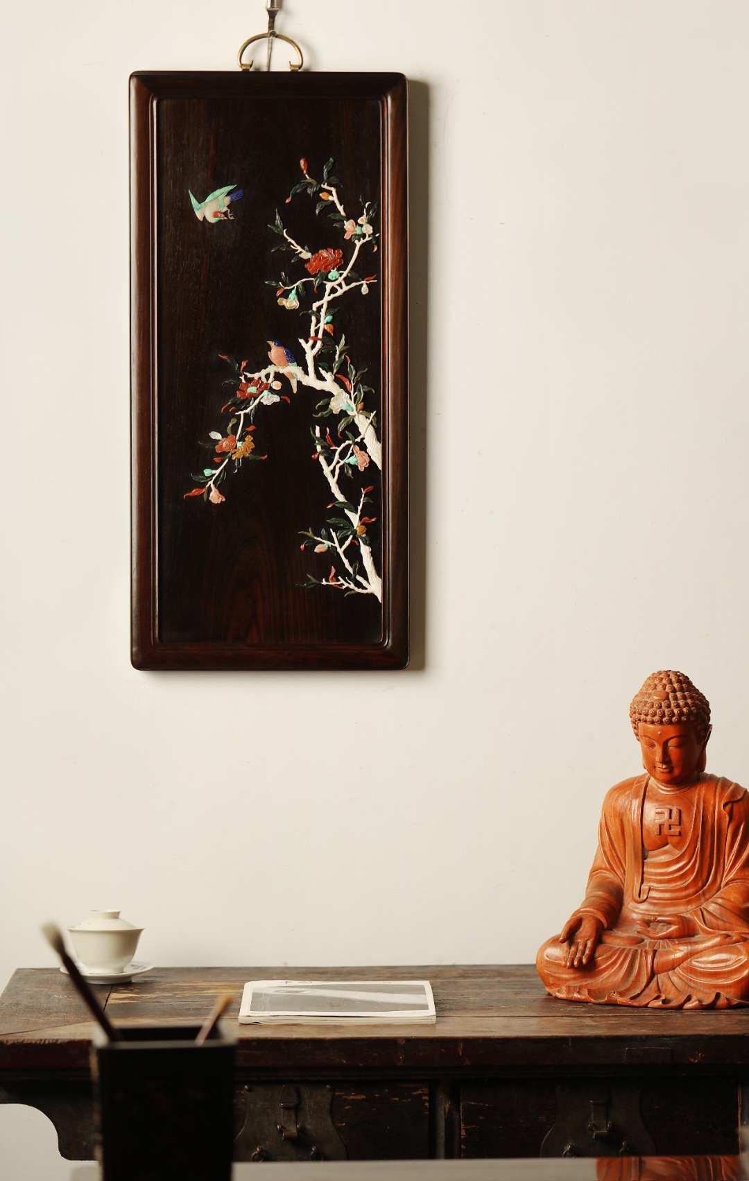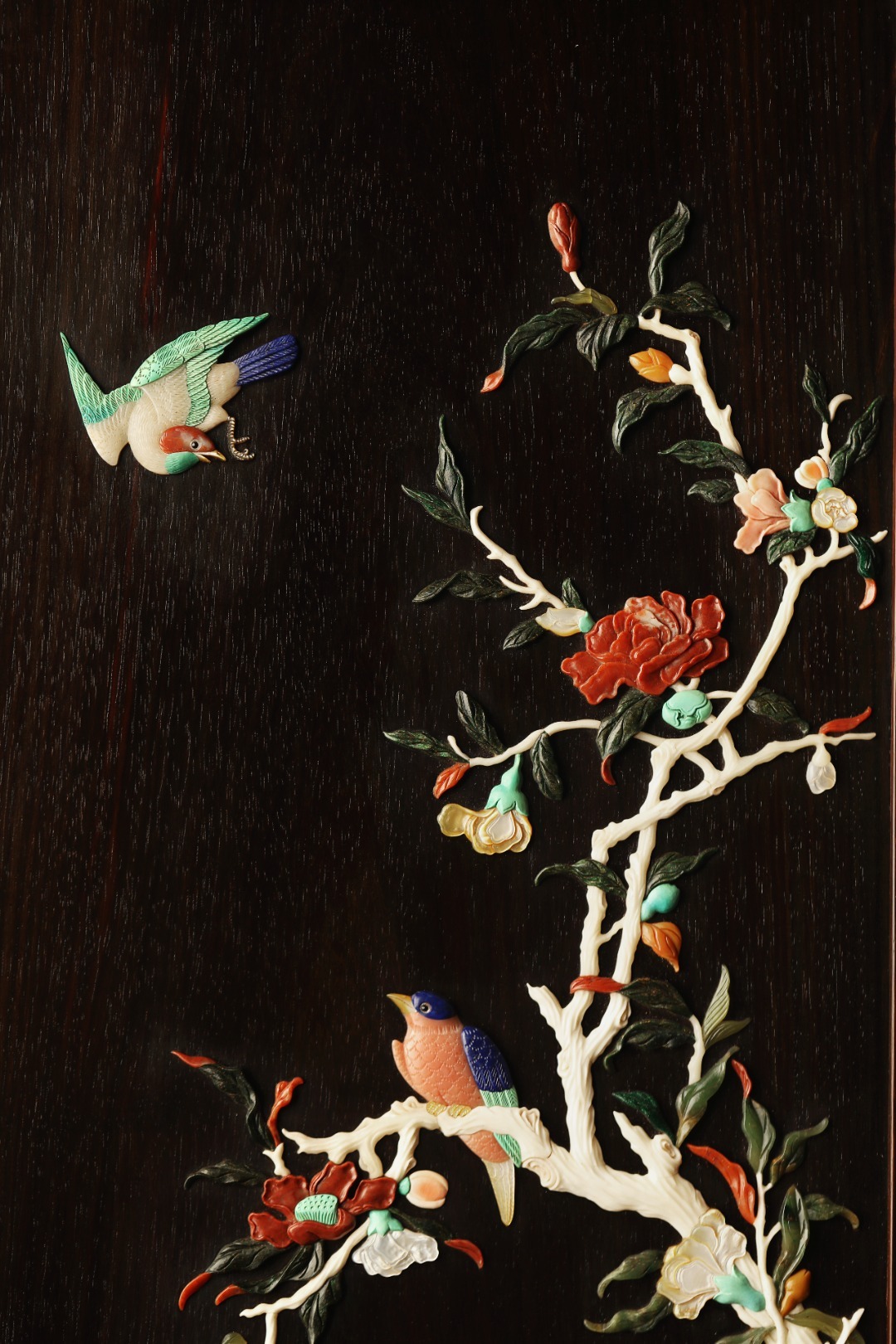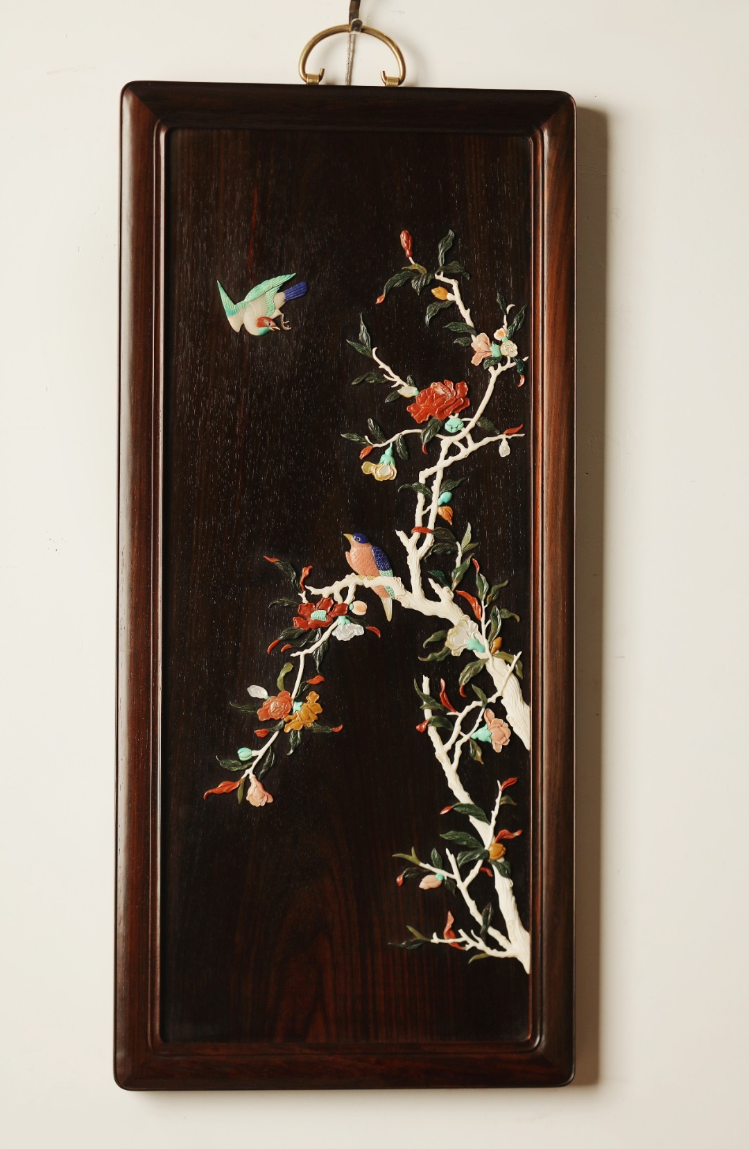 酸枝x百宝嵌 | 花开富贵 挂屏老挝大红酸枝独板老料制,百宝镶嵌,工艺精湛,色彩