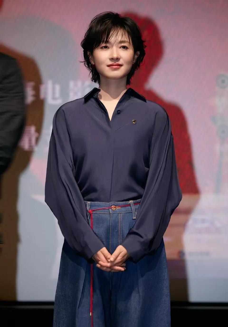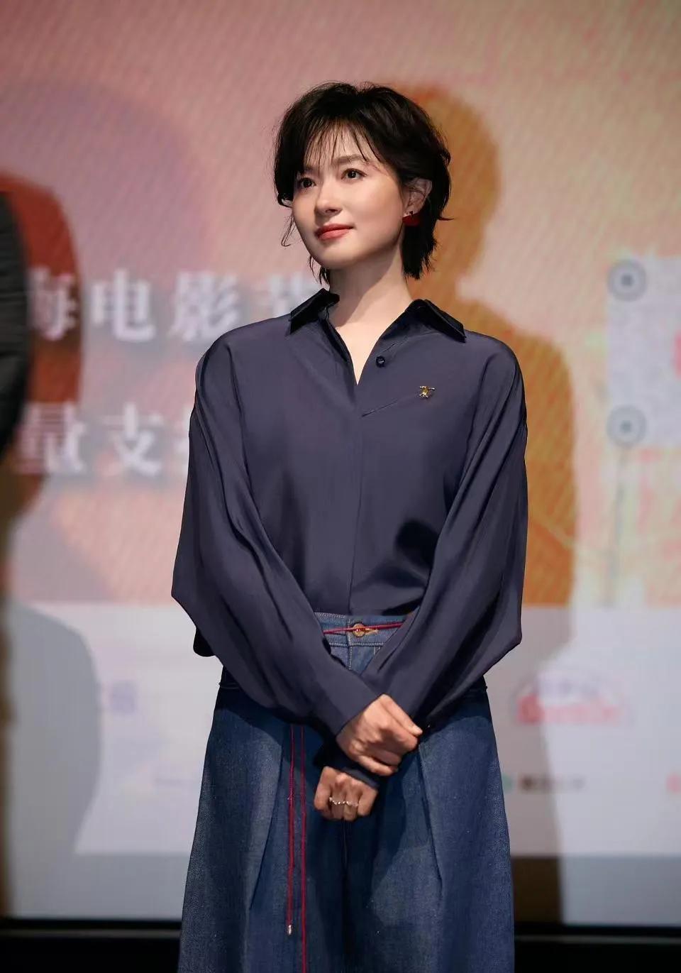 万茜这气质,是把“清冷感”焊在身上了✨ 一件垂坠感深蓝衬衫,配高腰阔腿牛仔裤