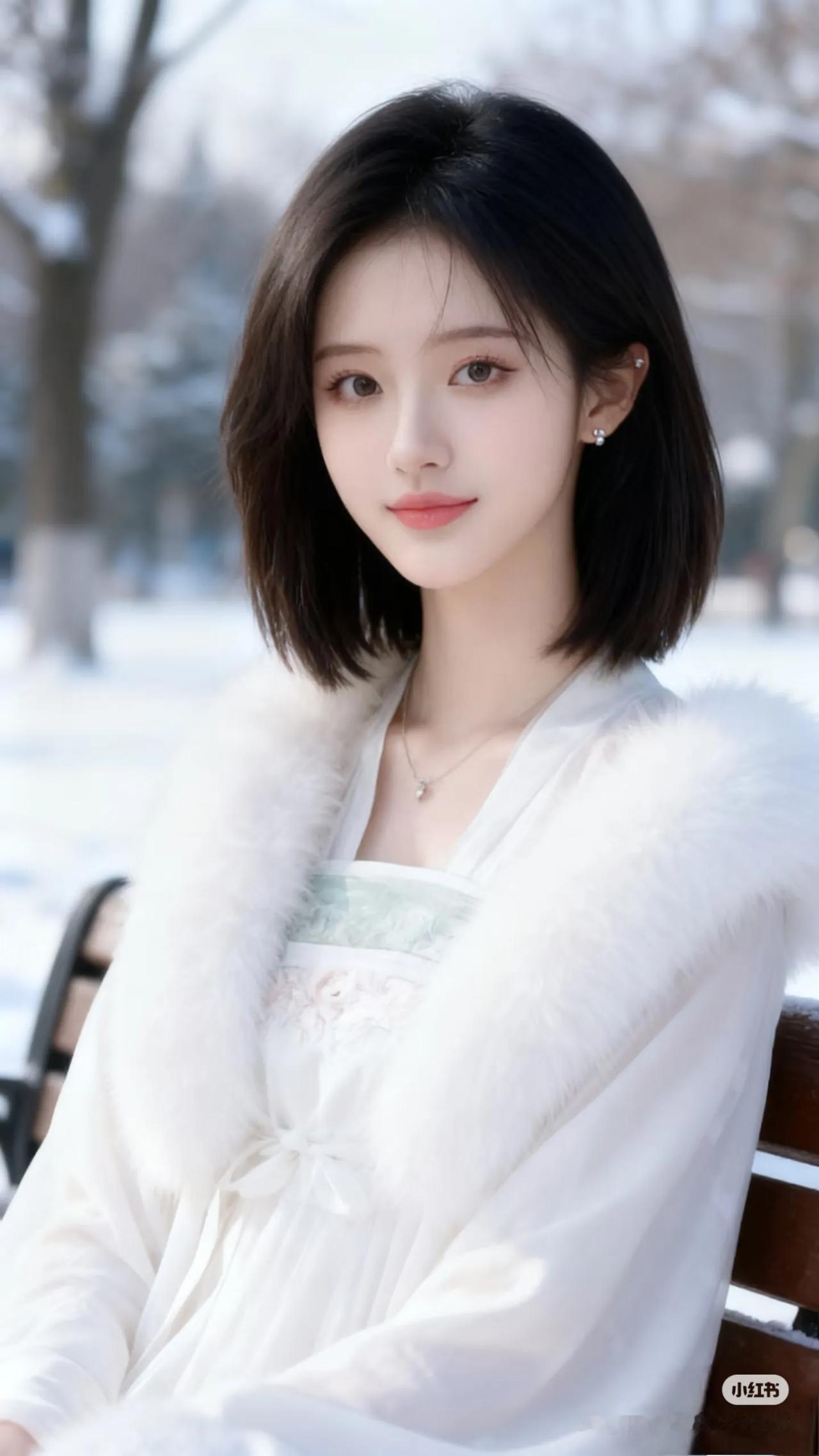 冬日暖阳下,温柔少女在雪地长椅上静坐,宛如一幅唯美画卷。街拍 高清美女