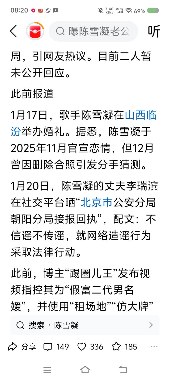 歌手陈某凝的丈夫得罪谁了?—— 据报道,歌手陈某凝的丈夫被曝领证前一天出轨。当事