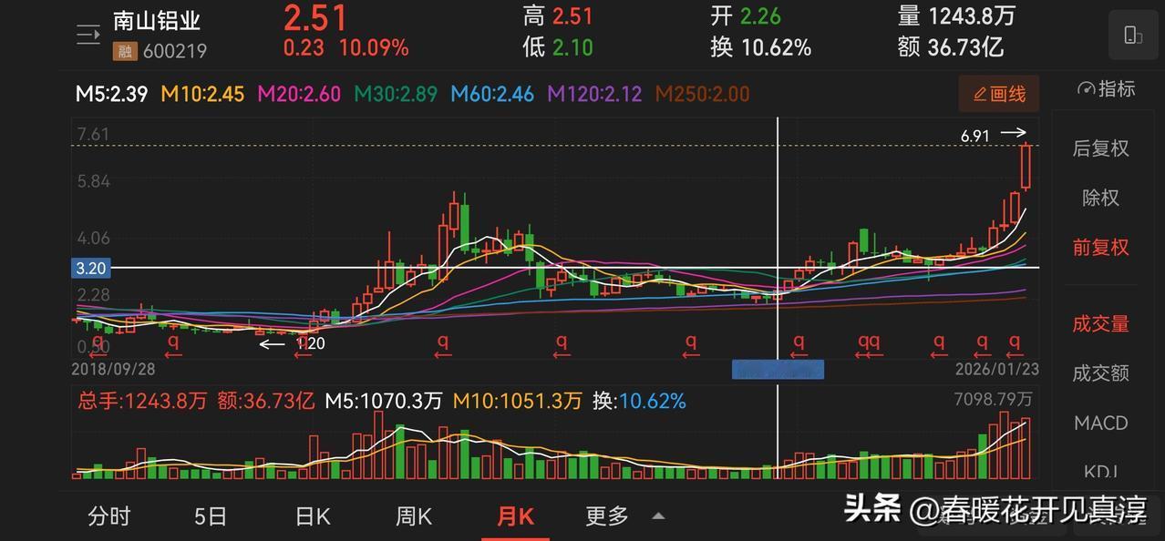 刚才复盘了一下有色品种,首先铝业股里面云铝股份还是强过中国铝业和南山铝业,当然南山铝业目前的估值,在所有的有色里面都属于比较便宜的。 和金银有关的股票目前都不便宜了,市净率普遍超过 5,市盈率普遍超过 50,对比一下山东黄金、中金黄金、盛达资源, 大家可以自己把握。 江西铜业仍然是估值合理偏低的品种,云南铜业紧随其后。所以,目前的吹泡泡主要还在于新高之后的品种。 总的来说,像南山铝业、江西铜业和云南铜业这样的品种,还是相对可以放心拿着的。 买股票收益大约来自三类:一类收益来自反转,一类来自业绩增长,还有一类利润是是来自泡泡浴,这个是毋庸置疑的。一旦黄金拐头向下,那么铜和铝也必然不保。所以我一直说希望黄金能够,横在高位,而不是说猛涨。 因为猛涨容易带来暴跌。暴涨暴跌对于后续品种的表现不太有利。