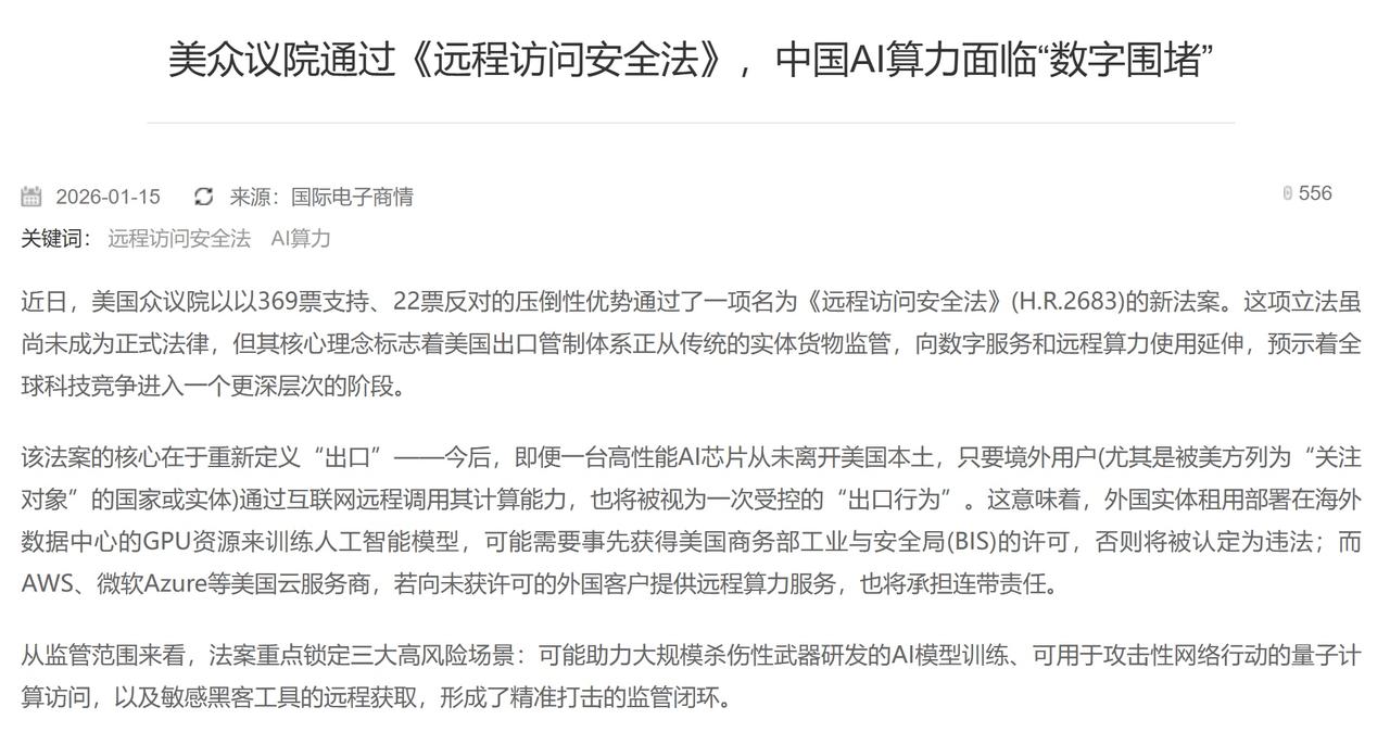 最近美国对中国人工智能发展的限制动作频频,先是通过《远程访问安全法》阻止中国远程使用美国算力资源,又是要求美国国家科学基金会(NSF)切断中国科研机构对美超算资源(ACCESS)的访问。不过这些压力只会加速中国算力突破。 关注科技圈的朋友可能听说了,国家超算互联网注册用户突破百万,这个数字比任何宣言都更有力量。它意味着,当部分西方政客忙于筑墙时,中国的科学家和工程师们,正用“鼠标投票”,将科研生命线扎根于自主平台。百万用户背后,是从前沿基础研究到工业软件仿真的全链条需求迁移。这并非行政命令的结果,而是平台提供了真实价值——开箱即用的250余款工业软件、智能化的计算环境,让科研从“找算力”的苦恼回归“用算力”的本质。 算力 人工智能