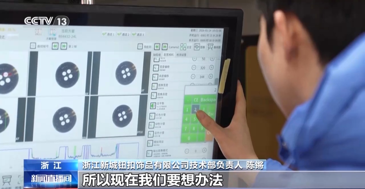 浙江新城钮扣饰品有限公司总经理陈海华:它能够智能地去寻找纽扣次品,通过AI方式把它识别出来。0.01毫米精度检测,这样子可以提高我们产品的稳定性。