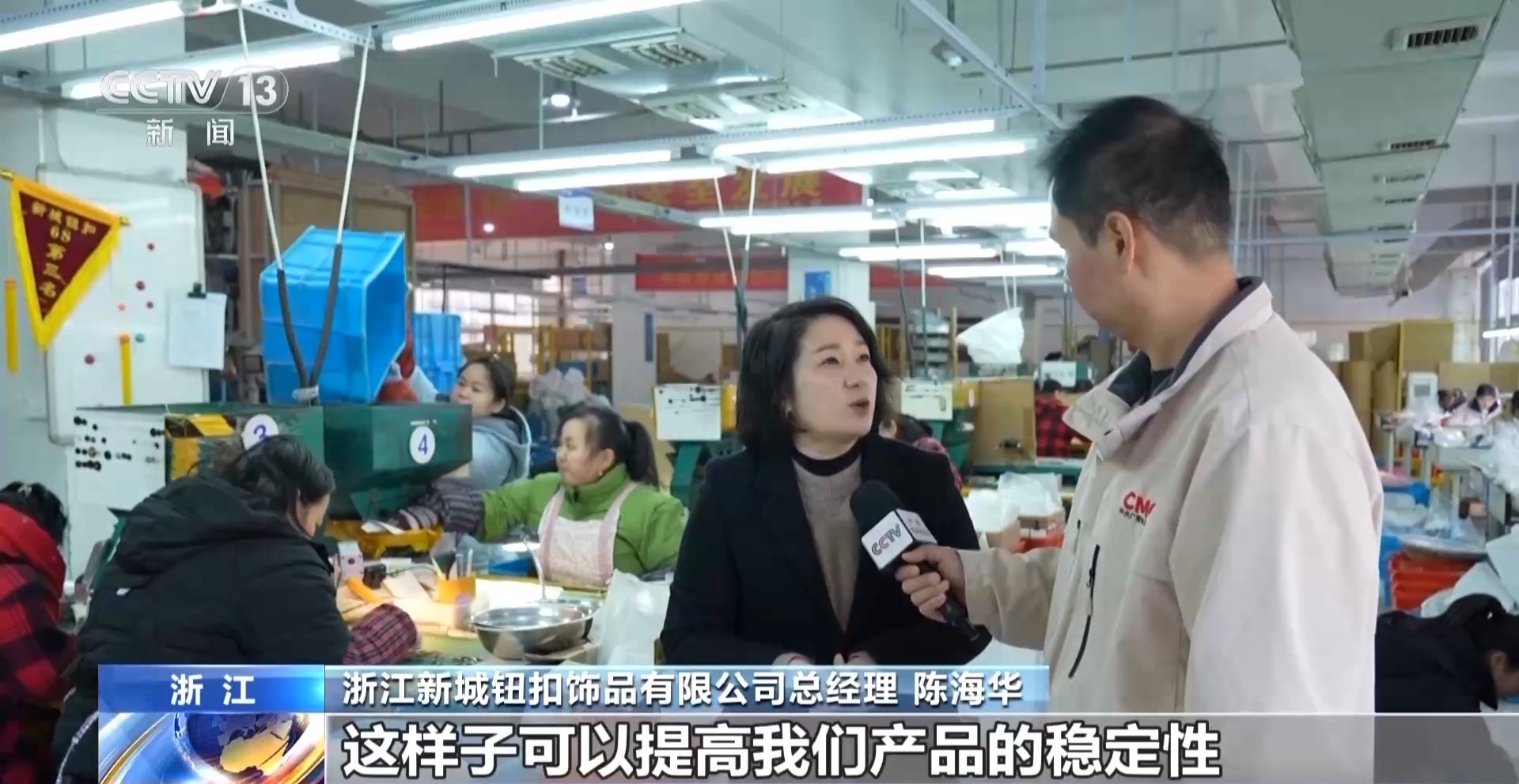 浙江新城钮扣饰品有限公司技术部负责人陈锵:这是我们两个月前刚引进的一台AI新机器,所以现在我们要想办法多引进一些自动化设备,做到更加高效。