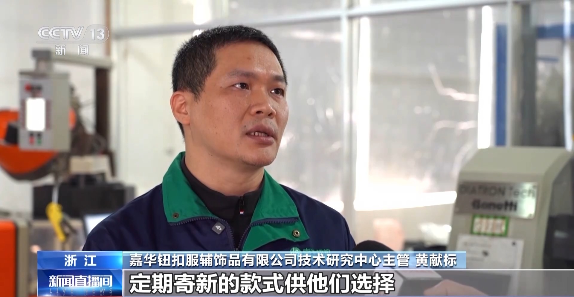 嘉华钮扣服辅饰品有限公司技术研究中心主管黄献标:做过的实验多达上万次。我们每个季度都会给所有客户寄新的款式供他们选择,所以说开发也是我们的重中之重。