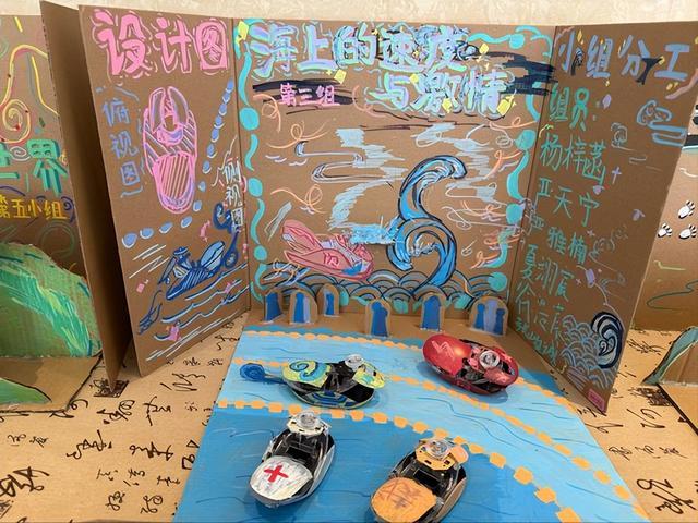 杨梓涵同学在一旁补充:“我的这个作品叫《海上的速度与激情》,用的是旧鼠标和电路板。我们觉得,废弃的零件也能‘燃’起来。”