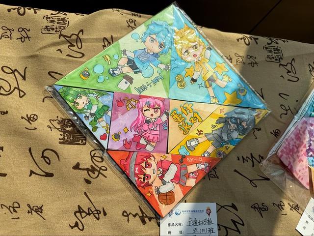 五年级的展区展现了完全不同的兴趣世界。学生们把喜爱的游戏、动漫角色画在纸板上,再制作成可拼合的七巧板。