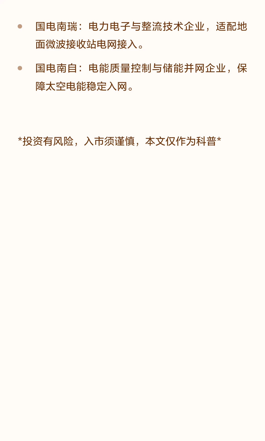 太空光伏是指在太空中部署光伏组件,将太阳能转化为电能后通过微波或激光传输至地面的新型能源技术,其发电效率不受昼夜、天气影响,年等效利用时长可达地面的 3-5 倍。据机构测算,仅我国 “逐日工程” 一期投资规模就超百亿,2030 年全球市场规模有望突破千亿元。