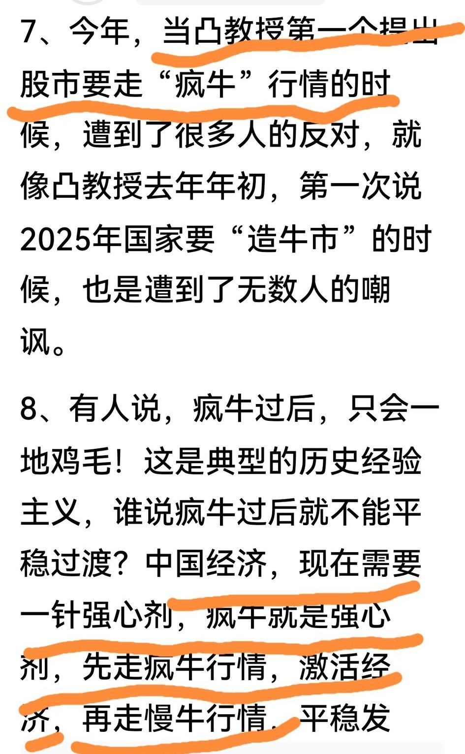 又见凸教授的“夜已深”,虽然没再提“暴富”,但仍一如既往鼓噪A股来“疯牛”行情。在严打网络炒作情况下,敢公然与管理层治疯牛对着干,老凸算是当下高烧不退的牛人。 连CCTV都明确表态要慢牛不要疯牛,这话语显然是传递管理层的声音。按理说ETF砸沪深300和上证50,长期持股券商股不动的老凸体会最深,但现实是他油盐不进,还用网络影响其粉。 有网友说,治疯牛第一阶段很胶着,接下来要么对老凸的言论直接封禁,要么用ETF继续狂砸券商股、把“凸”的收益变成“凹”的亏损,才能让他不再像疯牛一样发神经。[捂脸]