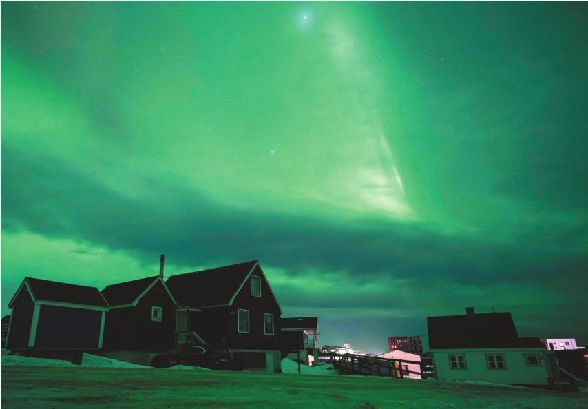 这是1月25日在丹麦自治领地格陵兰岛首府努克拍摄的北极光。