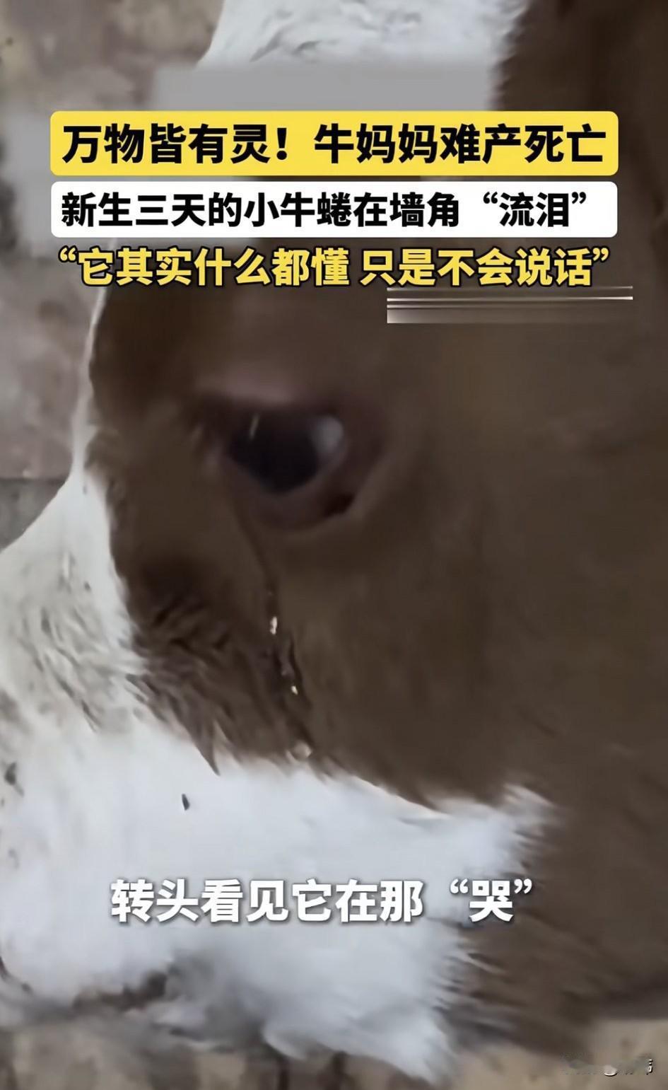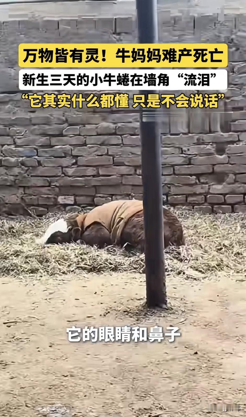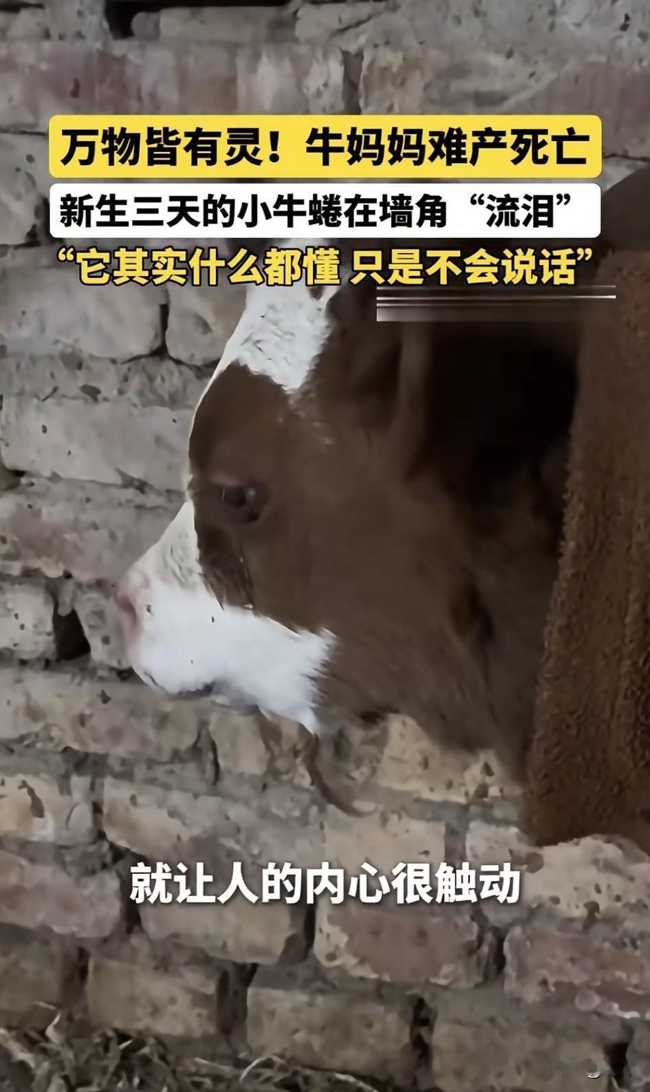 泪目了!真的是万物皆有灵,牛妈妈难产而死,新生三天的小牛在墙角“流泪”。它其实什么都懂,只是不会说话。 一位大哥养了一只牛妈妈,后来牛妈妈怀孕生小牛的时候,不幸难产死亡,而它的孩子成功的活了下来,这只小牛自己居然和人一样眼睛流泪,鼻子一抽一抽就像小孩哭泣那样一直哭。真的很让人触动,它知道自己的妈妈已经走了,非常伤心,整日郁郁寡欢的。大哥也表示要更加的疼爱照顾它,让它可以早日走出阴霾。