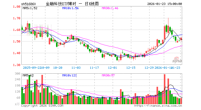 1月23日,金融科技ETF博时(516860)涨1.59%,成交额8701.80万元。当日份额增加500.00万份,最新份额为11.61亿份,近20个交易日份额减少4.01亿份。最新资产净值计算值为17.70亿元。
