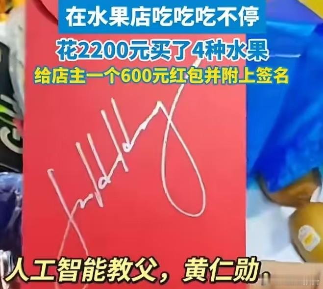 AI之王黄仁勋果然是非常大方,他昨天在上海陆家嘴乳山路菜市场给摊主的红包是600