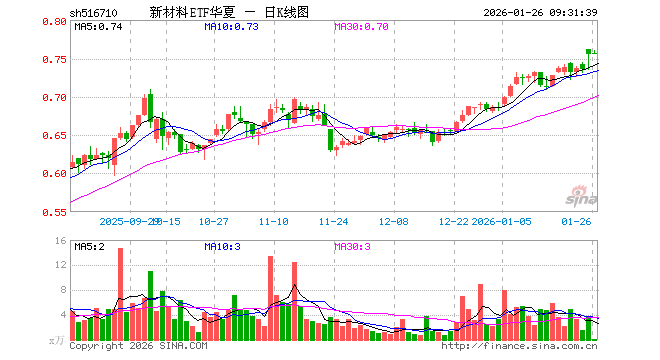 1月26日,新材料ETF华夏(516710)开盘涨0.26%,报0.757元。新材料ETF华夏(516710)重仓股方面,北方华创开盘跌0.44%,宁德时代涨1.45%,万华化学涨0.00%,隆基绿能涨2.48%,华友钴业涨1.86%,天赐材料涨1.11%,三环集团涨0.02%,通威股份涨0.39%,三安光电涨2.66%,宝丰能源涨0.04%。