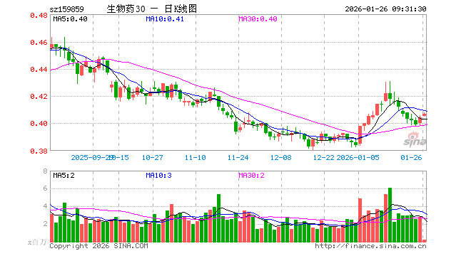 1月26日,生物医药ETF(159859)开盘涨0.25%,报0.405元。生物医药ETF(159859)重仓股方面,药明康德开盘涨0.26%,复星医药涨0.54%,上海莱士涨0.47%,泰格医药跌0.18%,长春高新涨0.21%,康龙化成涨0.00%,百利天恒跌0.14%,甘李药业涨0.00%,智飞生物涨1.56%,爱美客涨0.19%。