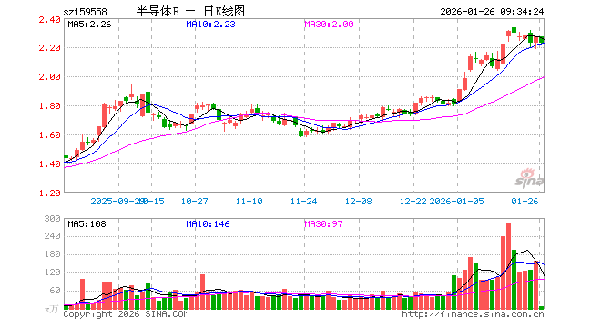 1月26日,半导体设备ETF易方达(159558)开盘涨0.00%,报2.273元。半导体设备ETF易方达(159558)重仓股方面,北方华创开盘跌0.44%,中微公司跌0.15%,拓荆科技跌1.99%,长川科技跌2.13%,沪硅产业涨0.04%,华海清科跌1.61%,中科飞测涨0.23%,南大光电跌0.03%,安集科技跌1.63%,芯源微跌1.60%。