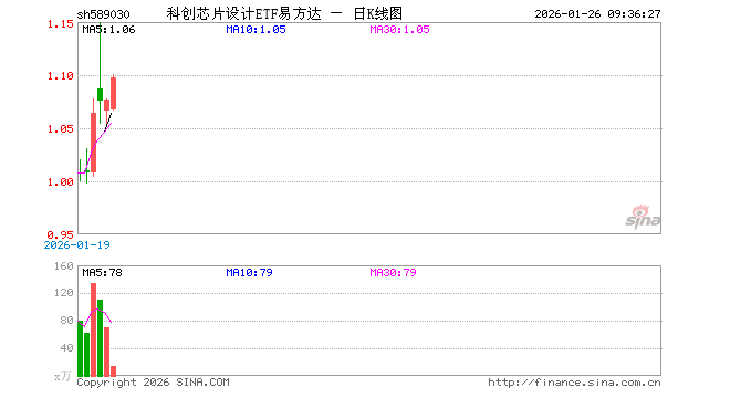 科创芯片设计ETF易方达(589030)业绩比较基准为上证科创板芯片设计主题指数收益率,管理人为易方达基金管理有限公司,基金经理为李栩,成立(2025-12-31)以来回报为7.41%。