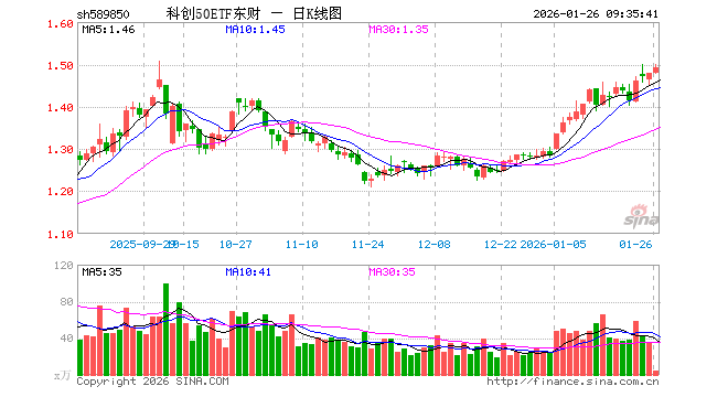 1月26日,科创50ETF东财(589850)开盘涨0.07%,报1.480元。科创50ETF东财(589850)重仓股方面,中芯国际开盘跌0.76%,寒武纪跌0.75%,海光信息跌0.18%,澜起科技跌1.14%,中微公司跌0.15%,金山办公涨1.71%,联影医疗涨1.33%,拓荆科技跌1.99%,芯原股份涨4.55%,沪硅产业涨0.04%。