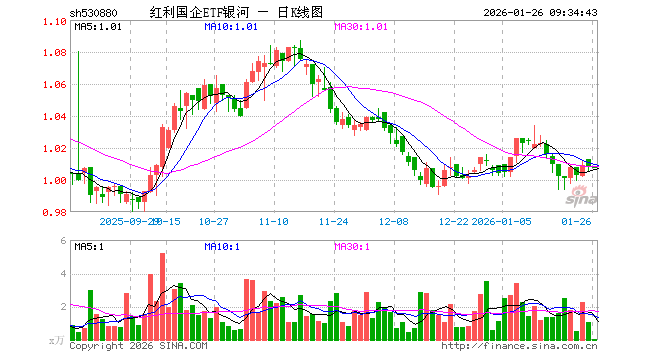 红利国企ETF银河(530880)业绩比较基准为上证国有企业红利指数收益率,管理人为银河基金管理有限公司,基金经理为黄栋,成立(2024-10-30)以来回报为3.18%,近一个月回报为0.46%。