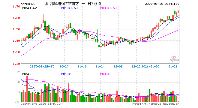 1月26日,科创50增强ETF南方(588370)开盘涨0.00%,报1.641元。科创50增强ETF南方(588370)重仓股方面,中芯国际开盘跌0.76%,寒武纪跌0.75%,海光信息跌0.18%,澜起科技跌1.14%,中微公司跌0.15%,金山办公涨1.71%,联影医疗涨1.33%,拓荆科技跌1.99%,芯原股份涨4.55%,生益电子跌0.65%。